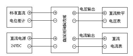 5.1.2按圖2正確接線(圖2為同時(shí)具有電壓和電流輸出的溫度變送器的接線,校準(zhǔn)時(shí)可根據(jù)儀表的實(shí)際輸出情況而定),儀表通電預(yù)熱5分鐘;