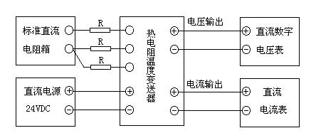 4.1.2按圖1正確接線(圖1為同時(shí)具有電壓和電流輸出的溫度變送器的接線,校準(zhǔn)時(shí)可根據(jù)儀表的實(shí)際輸出情況而定),儀表通電預(yù)熱5分鐘;