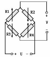 硅壓阻式和合金薄膜壓力傳感器采用的轉(zhuǎn)換電路一般為全橋應(yīng)變電路,測(cè)量原理見圖1示: